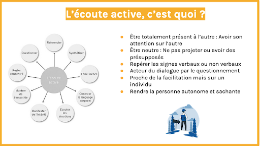 - Mettre en pratique l’écoute active dans des situations concrètes